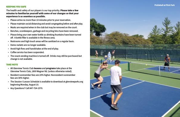 • All Glenview Tennis Club lessons and programs take place at the