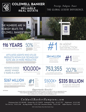 Opportunity Knocks ! Licensed , newly or to be licensed agents interested in a career in real estate , we have an opportunity for you . Come experience the difference with a strong global network spanning 41 countries and territories . For a confidential interview please email liz @ cbhamptons . com .
