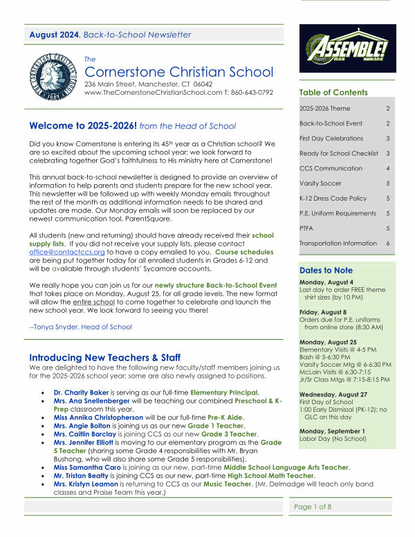 Did you know Cornerstone is entering its 45 th year as a Christian school? We are so excited about the upcoming school year; we look forward to celebrating together God’ s faithfulness to His ministry here at Cornerstone!