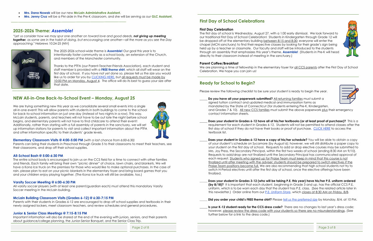 The 2025-2026 school-wide theme is Assemble! Our goal this year is to intentionally foster community as a school body, an extension of the Church, and members of the Manchester community.