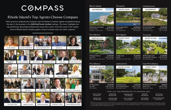 We’ re proud to celebrate the Compass and Lila Delman Compass agents recognized among the best in the business in the 2025 RealTrends Verified rankings. This honor highlights the top-performing real estate professionals across the country. From the coast to the capital, more of Rhode Island’ s leading agents choose Compass than any other company. *