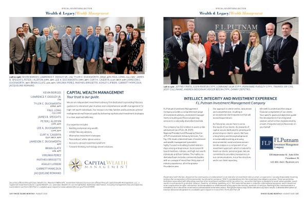 Left to right: KEVIN BORGES; LAWRENCE F. DOOLEY JR., CFA; TYLER C. DUCKWORTH, CPFA ®, AIF ®; PAUL LONG, CLU, ChFC; JAMES B. SPEIGHTS; PETER J. ALOFSIN, CFP ®, AIF ®; LEE A. DUCKWORTH, CFP ®, AIF ®; CURT A. CASERTA, CLU ®, RFC ®, AIF ®; JAMESON C. DUCKWORTH, AIF ®; BRIAN GLATZ, LIFA, AIF ®; VIRGINIA PEREZ; MATHIEU BRISSETTE; ASHLEY LIFRIERI; GARRETT MARCOUX; JACQUELINE ROMANO.