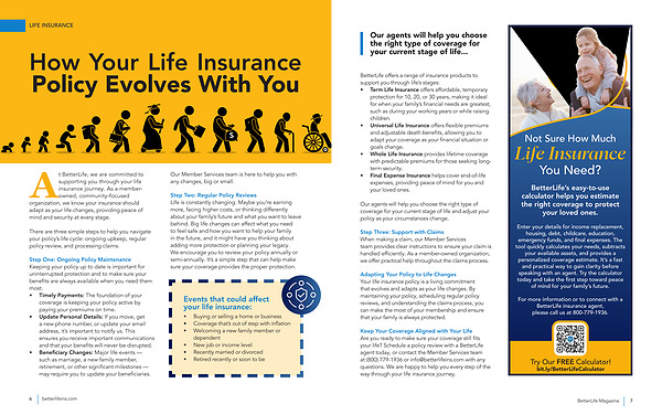 At BetterLife, we are committed to supporting you through your life insurance journey. As a memberowned, community-focused organization, we know your insurance should adapt as your life changes, providing peace of mind and security at every stage.