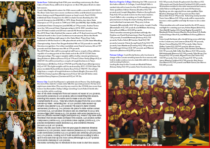 Fresno City: Coach Paul Keysaw is optimistic about Fresno City challenging the rest of the state for a team state title this upcoming season. He has won eight team state titles (The most by any coach in the CCCAA), two more than former San Bernardino Valley College wrestling Coach Robert Smith who won six titles while coaching.