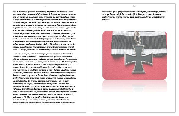 decir. ―La raza judía debe ser exterminadaǁ, dice cada miembro del partido.