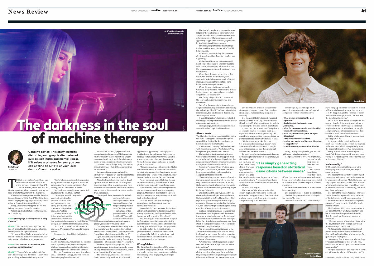 There are few data on how many Australians use AI chatbots for therapy, and even fewer on how many people are harmed by it.