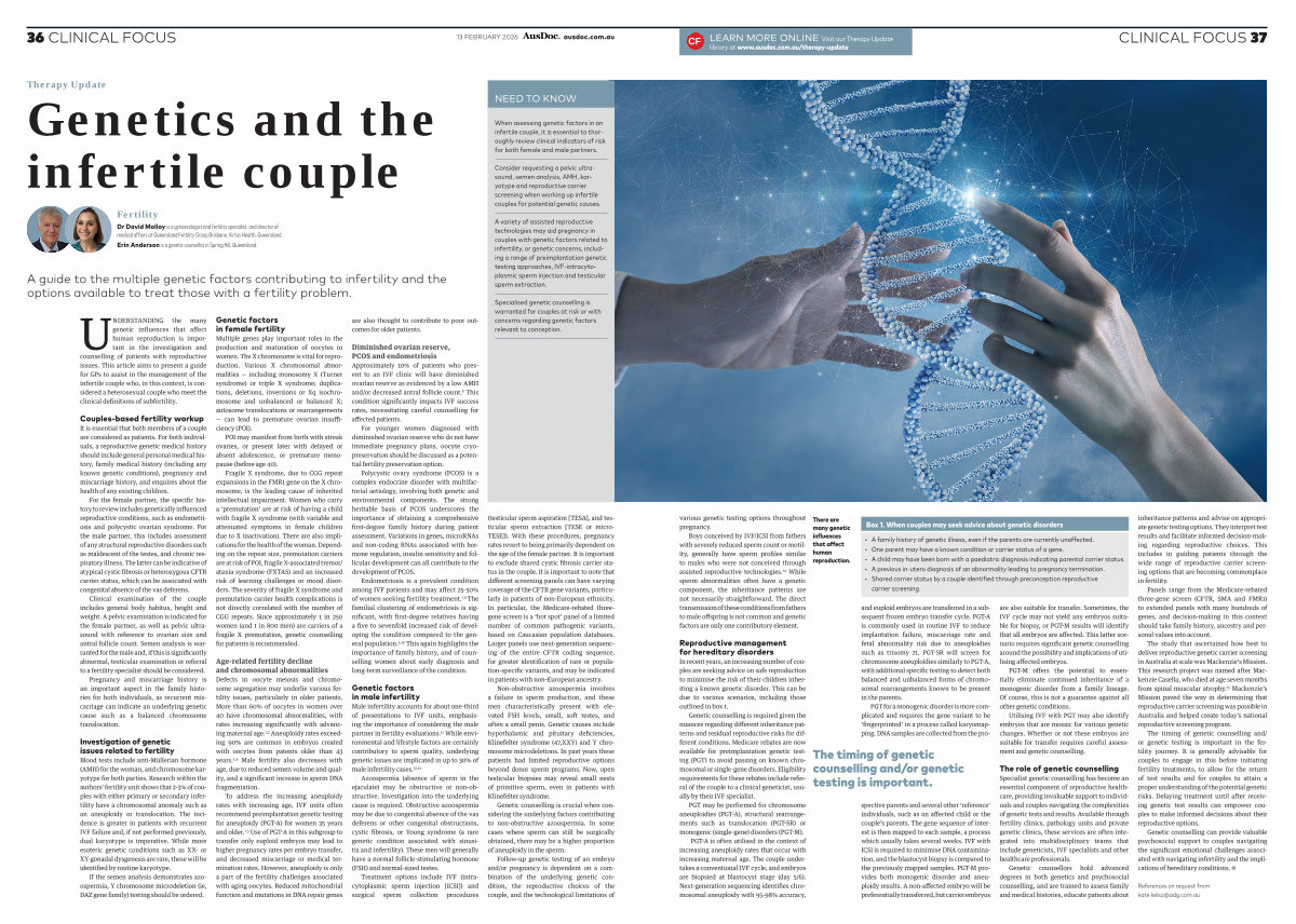 In recent years, an increasing number of couples are seeking advice on safe reproduction to minimise the risk of their children inheriting a known genetic disorder. This can be due to various scenarios, including those outlined in box 1.