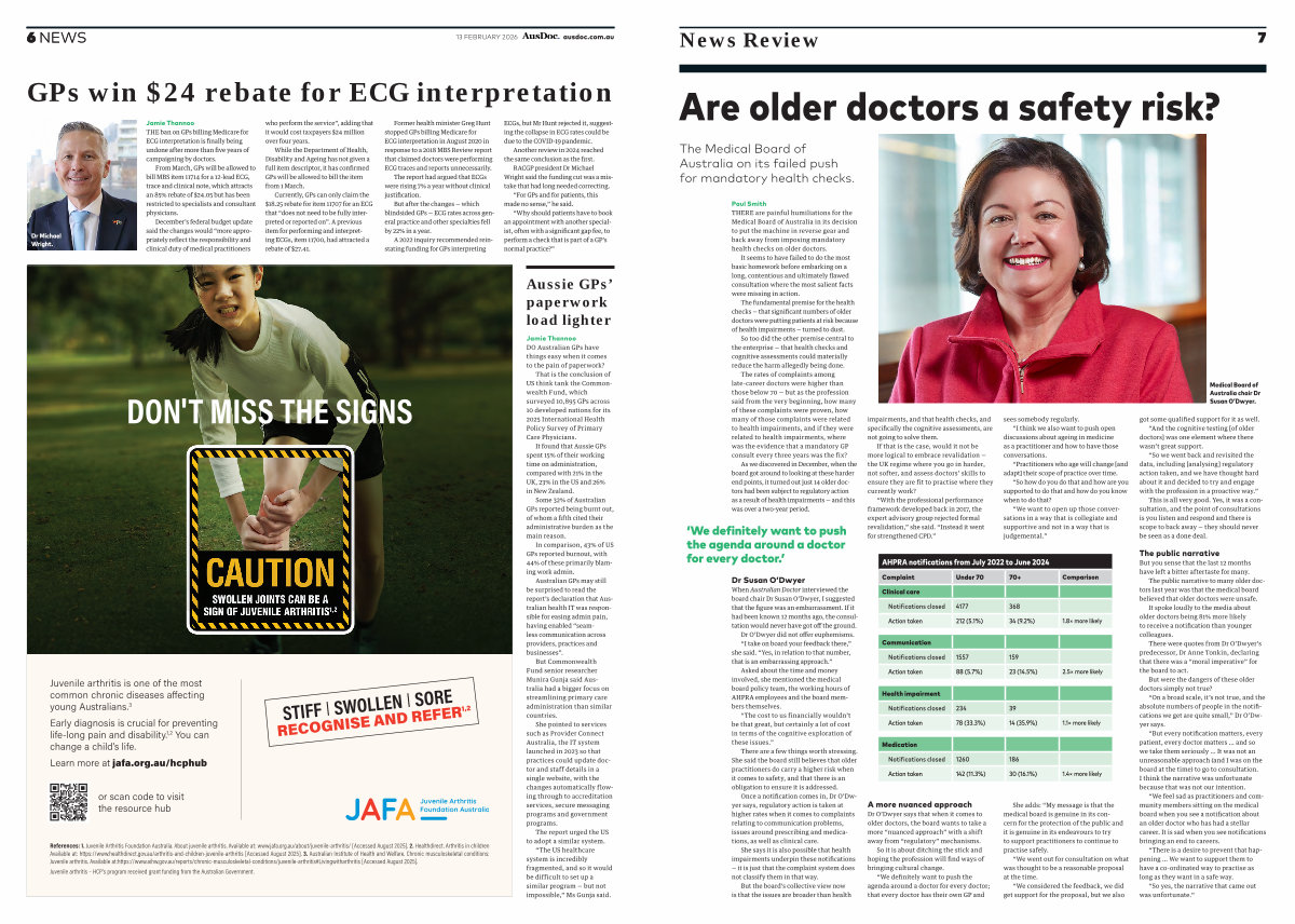 So too did the other premise central to the enterprise— that health checks and cognitive assessments could materially reduce the harm allegedly being done. The rates of complaints among late-career doctors were higher than those below 70— but as the profession said from the very beginning, how many of these complaints were proven, how many of those complaints were related to health impairments, and if they were related to health impairments, where was the evidence that a mandatory GP consult every three years was the fix?