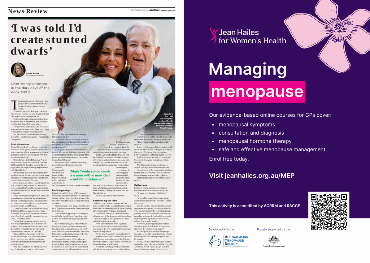 Professor Strong, now 87, tells Australian Doctor that he had never set out to fuel such a vitriolic debate. In fact, he never set out to become a liver surgeon.