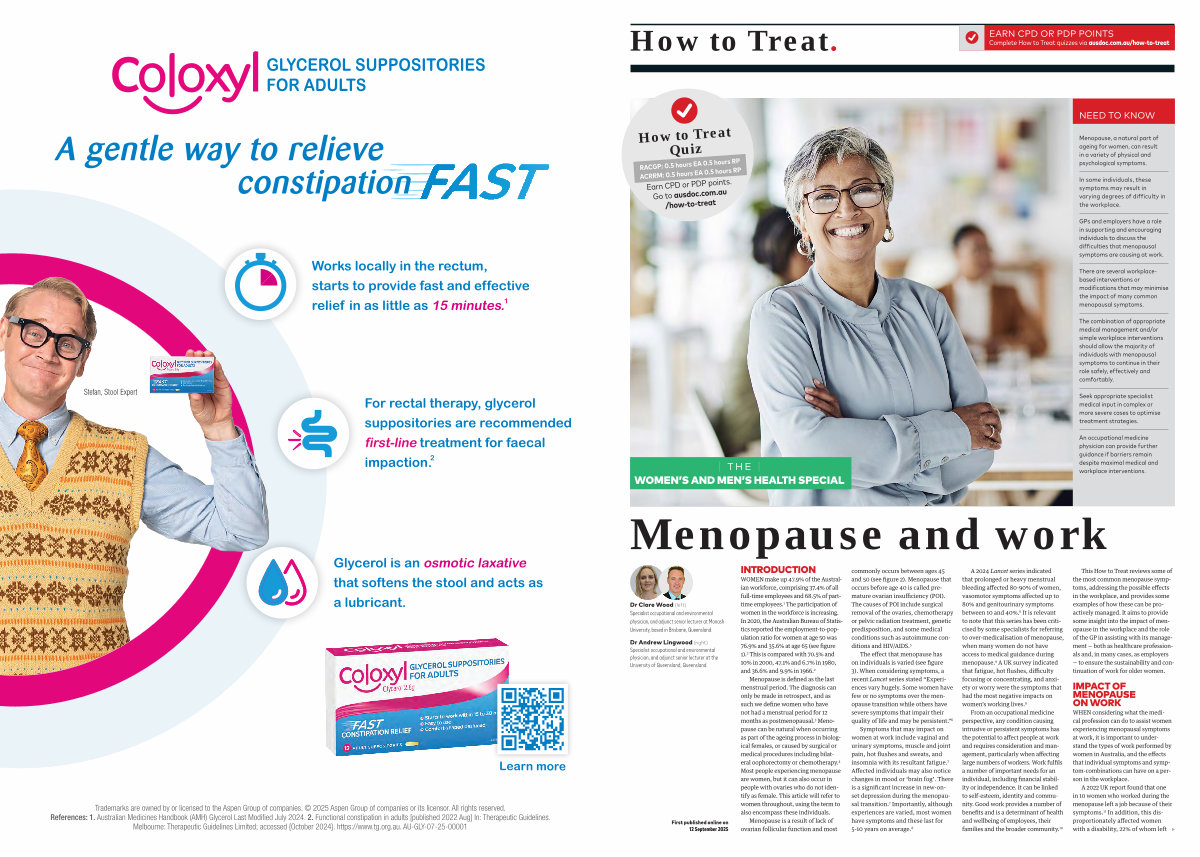 Trademarks are owned by or licensed to the Aspen Group of companies. © 2025 Aspen Group of companies or its licensor. All rights reserved. References: 1. Australian Medicines Handbook( AMH) Glycerol Last Modified July 2024. 2. Functional constipation in adults [ published 2022 Aug ] In: Therapeutic Guidelines. Melbourne: Therapeutic Guidelines Limited; accessed { October 2024 }. https:// www. tg. org. au. AU-GLY-07-25-00001