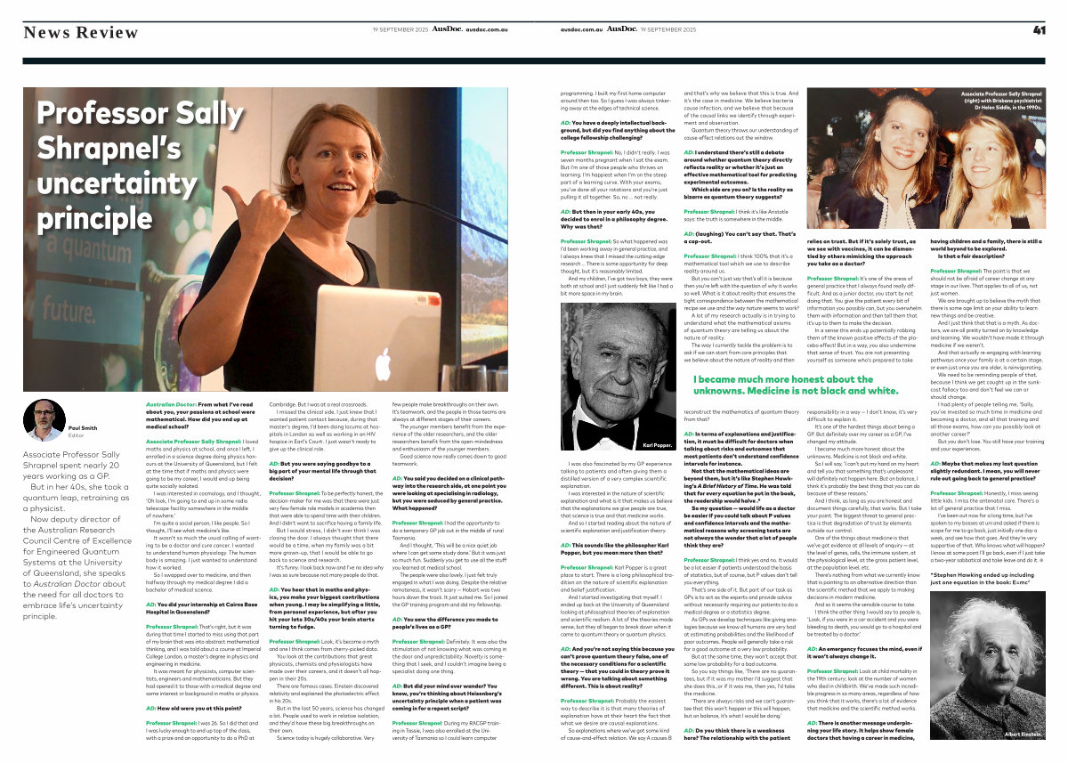 Professor Shrapnel: So what happened was I’ d been working away in general practice, and I always knew that I missed the cutting-edge research … There is some opportunity for deep thought, but it’ s reasonably limited.