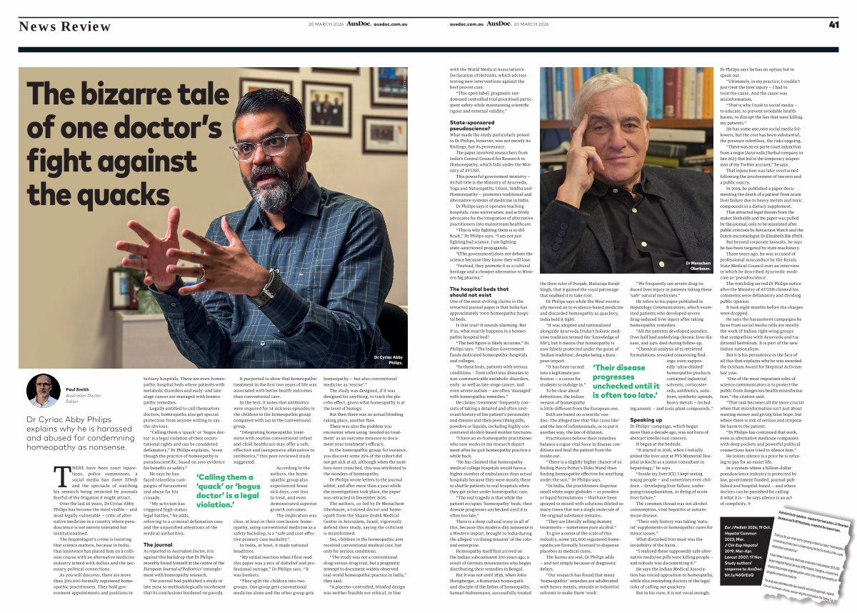 He says the Indian Medical Association has voiced opposition to homeopathy, while also reminding doctors of the legal risks of calling out quackery.