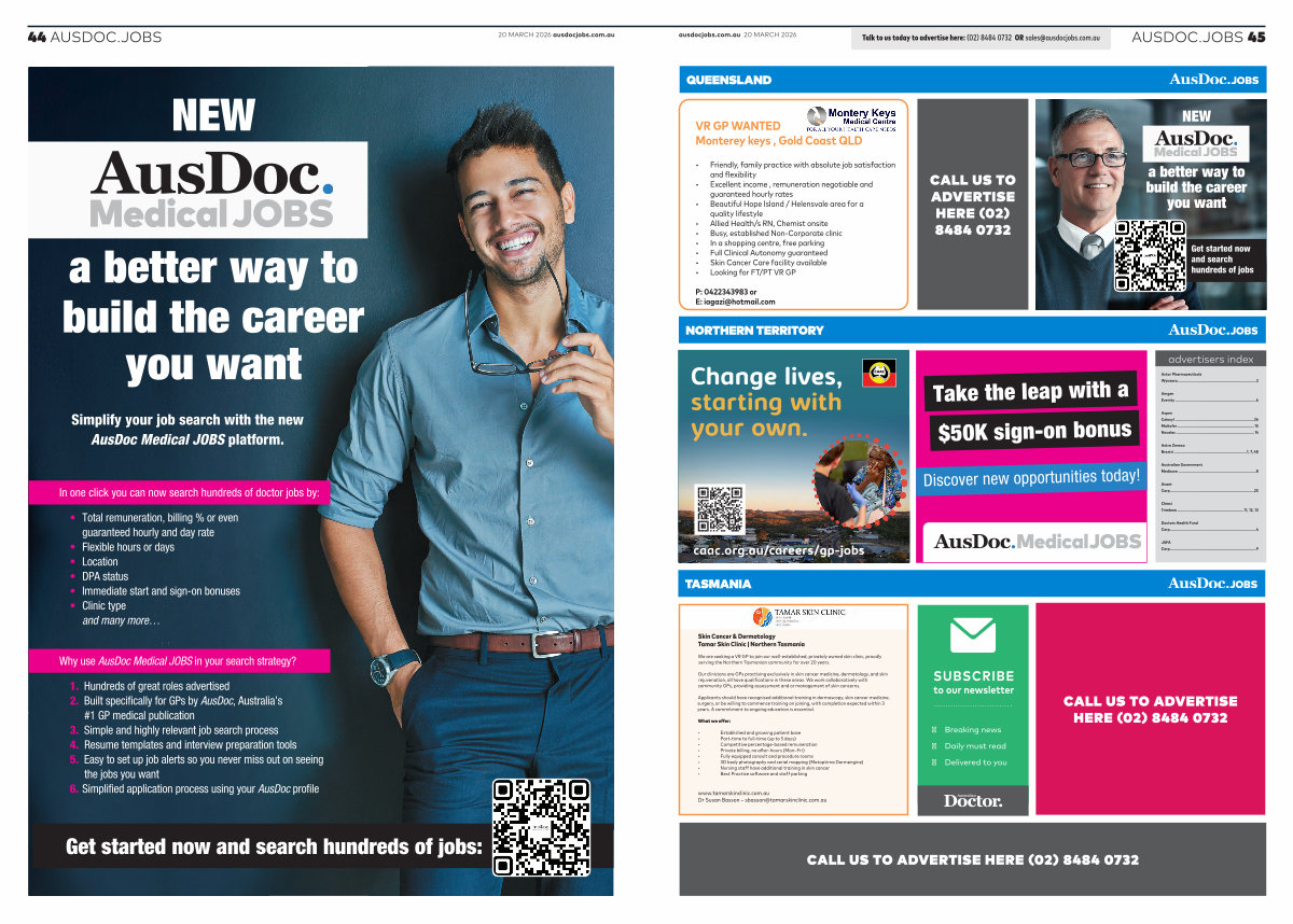 Talk to us today to advertise here:( 02) 8484 0732 OR sales @ ausdocjobs. com. au