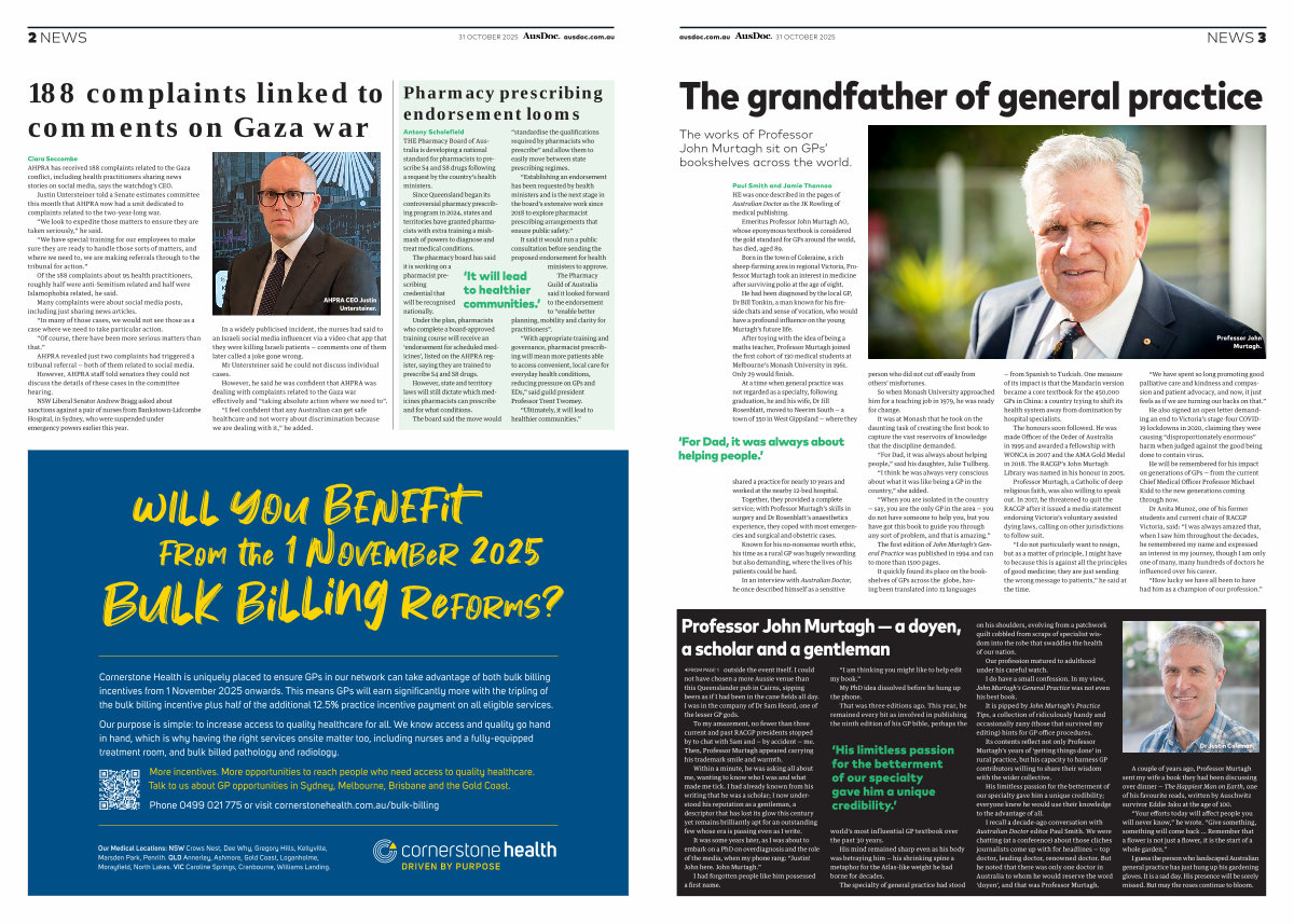 Cornerstone Health is uniquely placed to ensure GPs in our network can take advantage of both bulk billing incentives from 1 November 2025 onwards. This means GPs will earn significantly more with the tripling of the bulk billing incentive plus half of the additional 12.5 % practice incentive payment on all eligible services.
