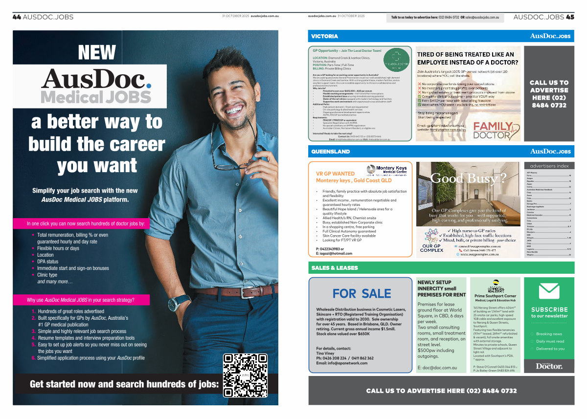 Talk to us today to advertise here:( 02) 8484 0732 OR sales @ ausdocjobs. com. au