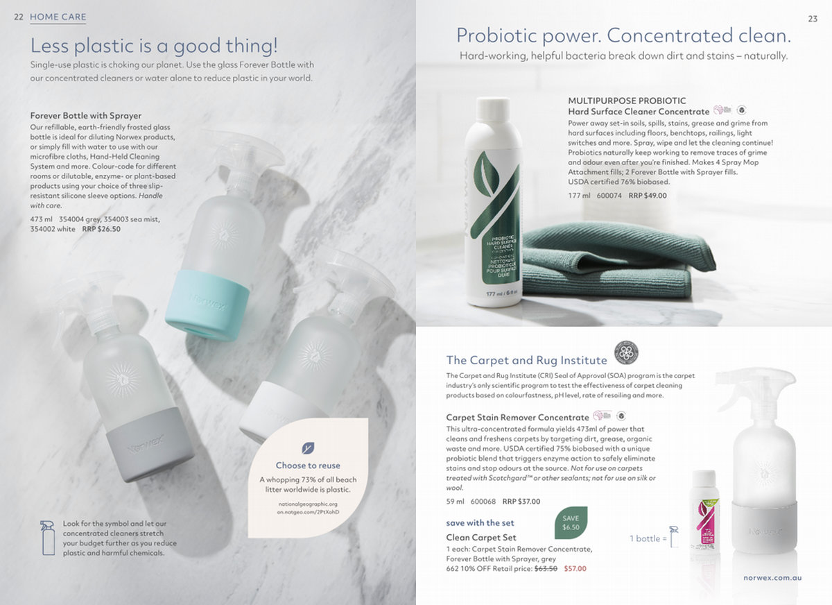 Forever Bottle with Sprayer Our refillable, earth-friendly frosted glass bottle is ideal for diluting Norwex products, or simply fill with water to use with our microfibre cloths, Hand-Held Cleaning System and more. Colour-code for different rooms or dilutable, enzyme- or plant-based products using your choice of three slipresistant silicone sleeve options. Handle with care.