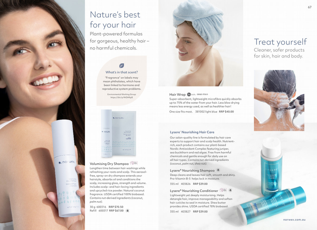 Volumising Dry Shampoo Lengthen time between hair washings while refreshing your roots and scalp. This aerosolfree, spray-on dry shampoo extends your hairstyle, absorbs oil and conditions the scalp, increasing gloss, strength and volume. Includes scalp- and hair-loving ingredients and upcycled rice powder. Natural coconut fragrance. USDA certified 100 % biobased. Contains nut-derived ingredients( coconut, palm nut).