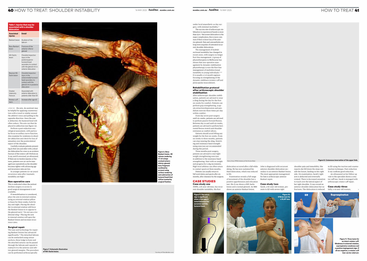 After arthroscopic shoulder stabilisation