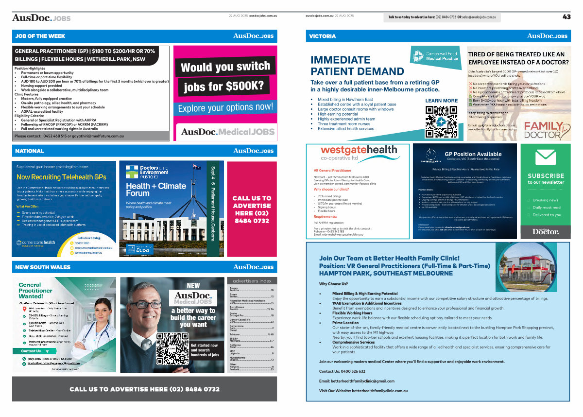 22 AUG 2025 ausdocjobs. com. au