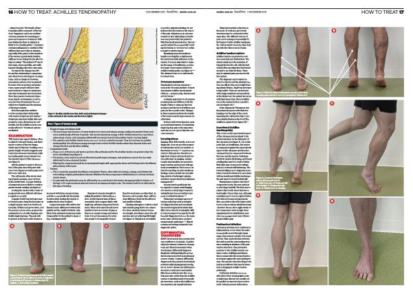 Loading the tendon with a series of progressively more difficult calf raises is a guide to severity .