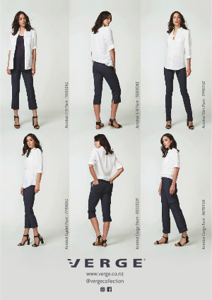 www.verge.co.nz @vergecollection Acrobat 3/4 Pant - 5680ENZ Acrobat Slim Pant - 7746ENZ Acrobat Cargo Pant - 8678ELW Acrobat 7/8 Pant - 5681ENZ Acrobat Cargo Short - 8833ELW Acrobat Eyelet Pant - 7748ENZ