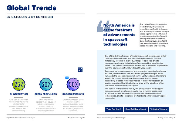 The United States, in particular, leads the way in spacecraft propulsion, artificial intelligence, and autonomy. It's home to major space agencies like NASA and private companies like SpaceX, driving innovation in the field. Canada also plays a significant role, contributing to international space missions and excelling. satellite technology.
