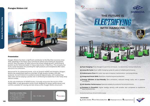 Paragon Motors has been a significant contributor to the Mauritian economy since 2010, operating in the heavy-duty commercial vehicle and warehouse equipment sectors. Over the years, its sales volume has shown steady growth, cementing its position as the foremost leader in heavy-duty trucks in Mauritius. The company has built a solid reputation for providing the right products and exceptional after-sales service to its customers.