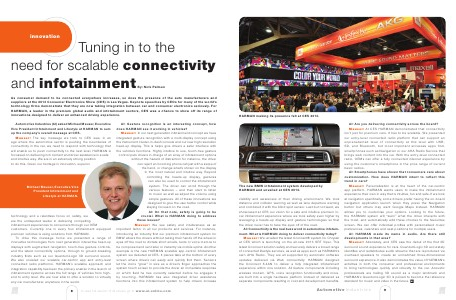 visibility and awareness of their driving environment. We took distance and collision warning as well as lane departure warning and combined it with the blind spot sensor. Last but not least, we showcased at CES our vision for a safe and intuitive premium incar infotainment experience where we took safety even higher by leveraging a heads-up display and gesture technologies so that the driver never has to take the eyes off of the road.