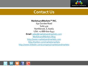 MarketsandMarkets™ INC . 630 Dundee Road Suite 430 Northbrook , IL 60062 USA : + 1-888-600-6441 Email : sales @ marketsandmarkets . com MarketsandMarkets Blog http :// www . marketsandmarkets . com http :// twitter . com / marketsmarkets http :// www . linkedin . com / company / marketsandmarkets