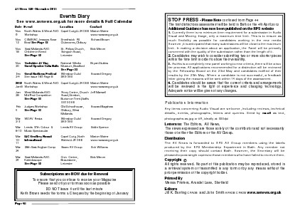 S e e w w w .a v n e w s .o rg .u k fo r m o re d e ta ils & F u ll C a le n d a r