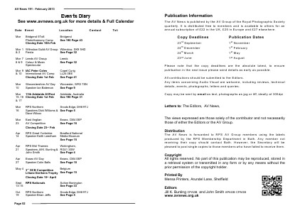 See www.avnews.org.uk for more details & Full Calendar