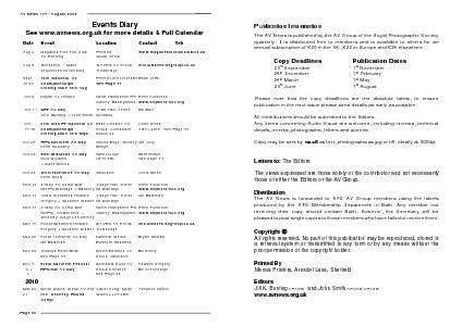 See www.avnews.org.uk for more details & Full Calendar