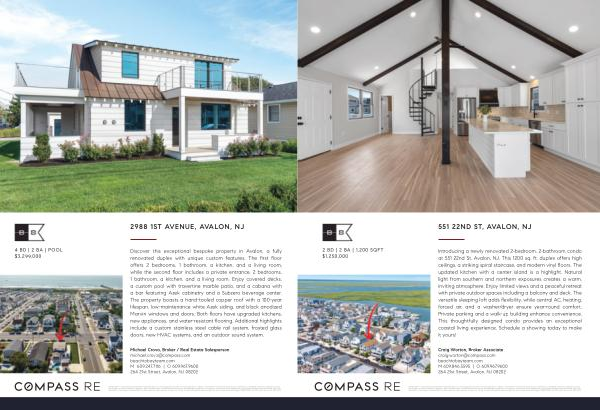 Compass RE is a licensed real estate broker and abides by Equal Housing Opportunity laws . All material presented herein is intended for informational purposes only . Information is compileda from sources deemed reliable but is subject to errors , omissions , changes in price , condition , sale , or withdrawal without notice . No statement is made as to accuracy of any description . All measurements and square footages are approximate . This is not intended to solicit property already listed . Nothing herein shall be construed as legal , accounting or other professional advice outside the realm of real estate brokerage . COMPASS RE | 264 21st Street , Avalon , NJ 08202