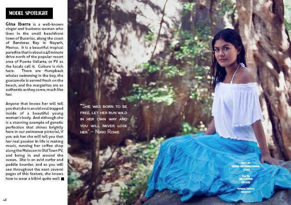 Anyone that knows her will tell you that she is an old soul trapped inside of a beautiful young woman's body. And although she is a stunning example of genetic perfection that shines brightly here in our swimwear pictorial, if you ask her she will tell you that her real passion in life is making music, running her coffee shop along the Malecon in Old Town PV, and being in and around the ocean. She is an avid surfer and paddle boarder, and as you will see throughout the next several pages of this feature, she knows how to wear a bikini quite well