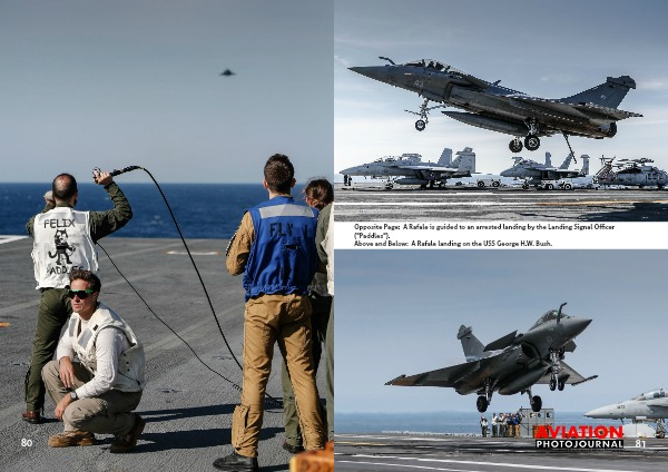 Above and Below: A Rafale landing on the USS George H.W. Bush.