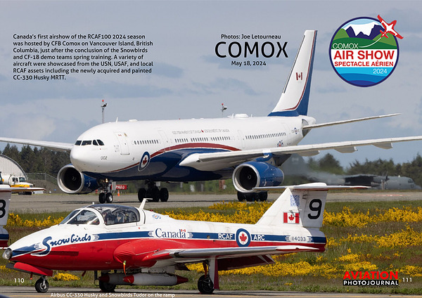 Canada’s first airshow of the RCAF100 2024 season was hosted by CFB Comox on Vancouver Island, British Columbia, just after the conclusion of the Snowbirds and CF-18 demo teams spring training. A variety of aircraft were showcased from the USN, USAF, and local RCAF assets including the newly acquired and painted CC-330 Husky MRTT.