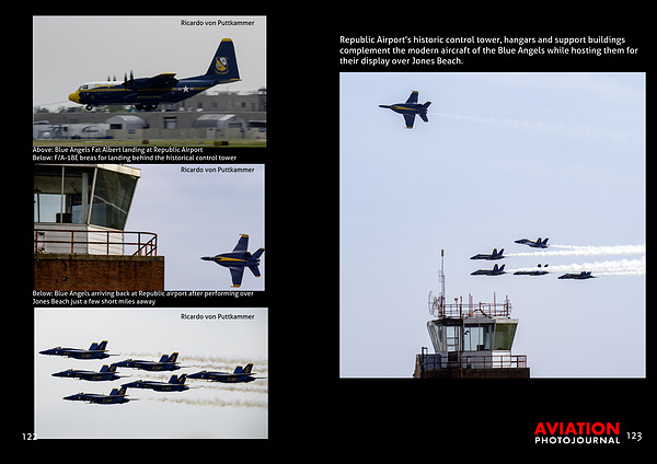 Republic Airport’s historic control tower, hangars and support buildings complement the modern aircraft of the Blue Angels while hosting them for their display over Jones Beach.