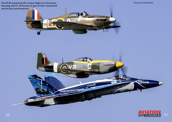 The RCAF presented this unique flight of a Hurricane, Mustang and CF-18 Hornet as part of their Centennial anniversary performances.