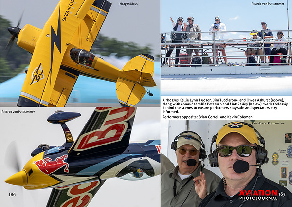 Airbosses Kellie Lynn Hudson, Jim Tucciarone, and Owen Ashurst (above), along with announcers Ric Peterson and Matt Jolley (below), work tirelessly behind the scenes to ensure performers stay safe and spectators stay informed.
