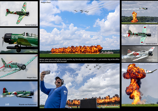 Below: when you're calling the action and the sky literally explodes behind you — just another day at the office for air show announcer Herk Strumpf!