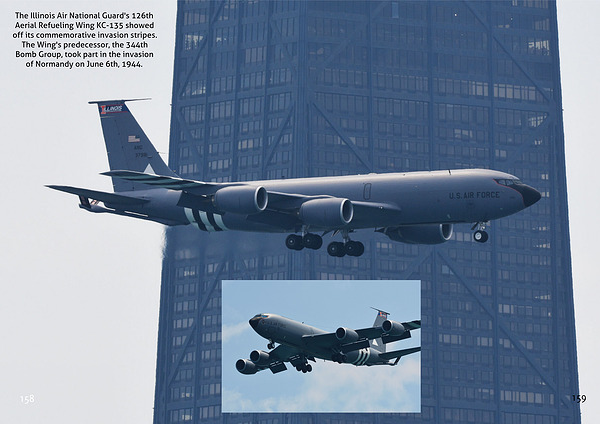 The Illinois Air National Guard's 126th Aerial Refueling Wing KC-135 showed off its commemorative invasion stripes. The Wing's predecessor, the 344th Bomb Group, took part in the invasion of Normandy on June 6th, 1944.