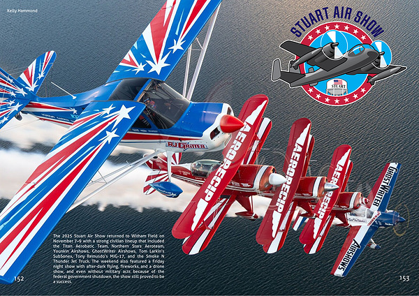 The 2025 Stuart Air Show returned to Witham Field on November 7–9 with a strong civilian lineup that included the Titan Aerobatic Team, Northern Stars Aeroteam, Younkin Airshows, GhostWriter Airshows, Tom Larkin’s SubSonex, Tony Remusdo’s MiG-17, and the Smoke N Thunder Jet Truck. The weekend also featured a Friday night show with after-dark flying, fireworks, and a drone show, and even without military acts because of the federal government shutdown, the show still proved to be a success.