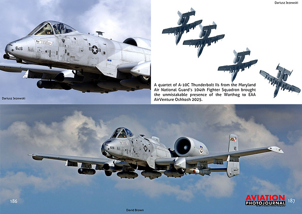 A quartet of A-10C Thunderbolt IIs from the Maryland Air National Guard’s 104th Fighter Squadron brought the unmistakable presence of the Warthog to EAA AirVenture Oshkosh 2025.