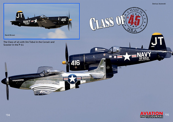 The Class of 45 with Jim Tobul in the Corsair and Scooter in the P-51