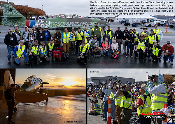 Warbirds Over Monroe offers an exclusive Photo Tour featuring three dedicated photo pits, giving participants rare, up close access to the flying action. Guided by Aviation Photojournal’s own Ricardo von Puttkammer and team, photographers are positioned for dynamic angles, dramatic light, and unforgettable moments on the ramp and in the sky.