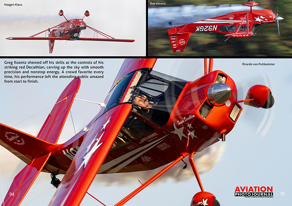 Greg Koontz showed off his skills at the controls of his striking red Decathlon, carving up the sky with smooth precision and nonstop energy. A crowd favorite every time, his performance left the attending public amazed from start to finish.