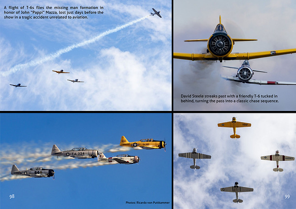 David Steele streaks past with a friendly T-6 tucked in behind, turning the pass into a classic chase sequence.