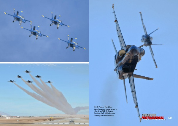 Both Pages: The Blue Angels spend many hours in the air at NAF El Centro honing their skills for the coming air show season.