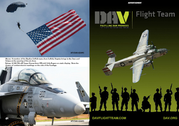 Above: A member of the Skydive Suffolk team, from Suffolk, Virginia brings in the Stars and Stripes at the opening of the air show.