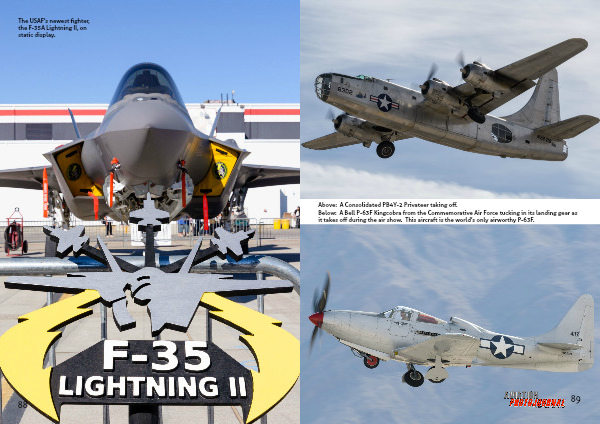 Below: A Bell P-63F Kingcobra from the Commemorative Air Force tucking in its landing gear as it takes off during the air show. This aircraft is the world's only airworthy P-63F.